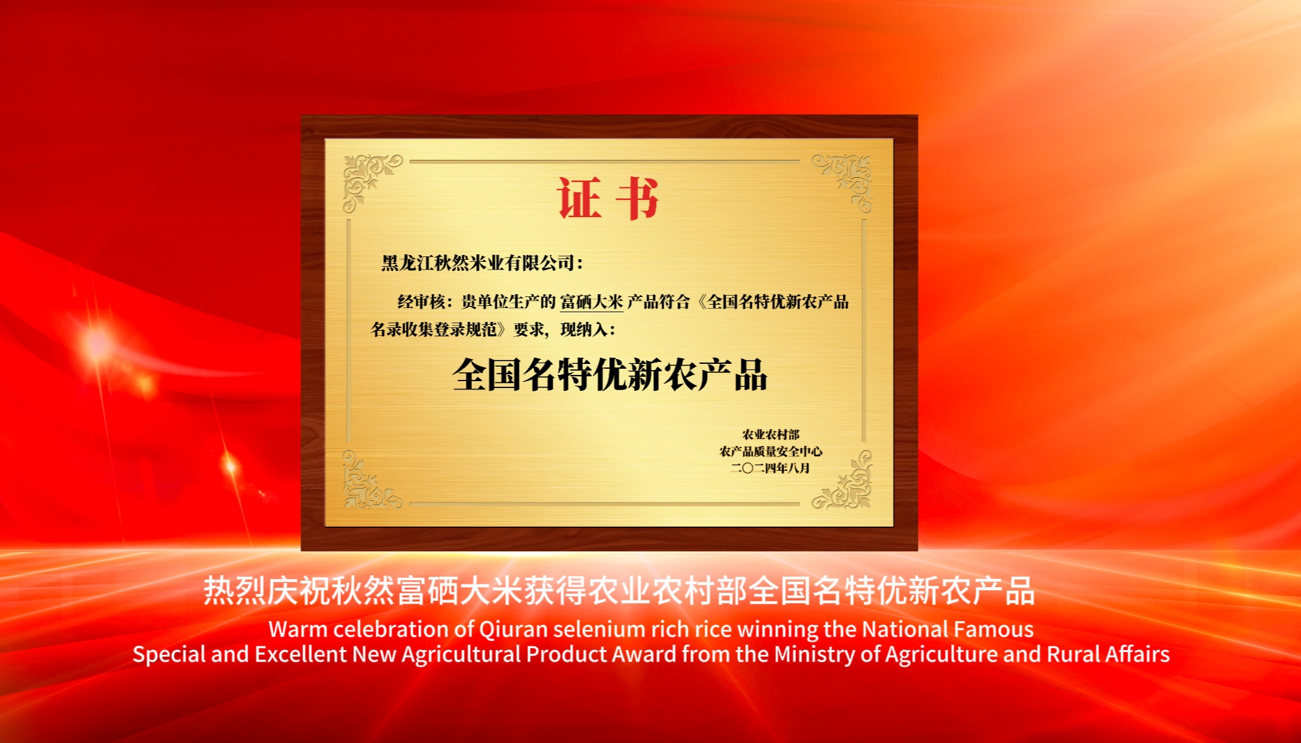 喜訊!秋然富硒大米入選農(nóng)業(yè)農(nóng)村部2024年全國(guó)名特優(yōu)新農(nóng)產(chǎn)品名錄