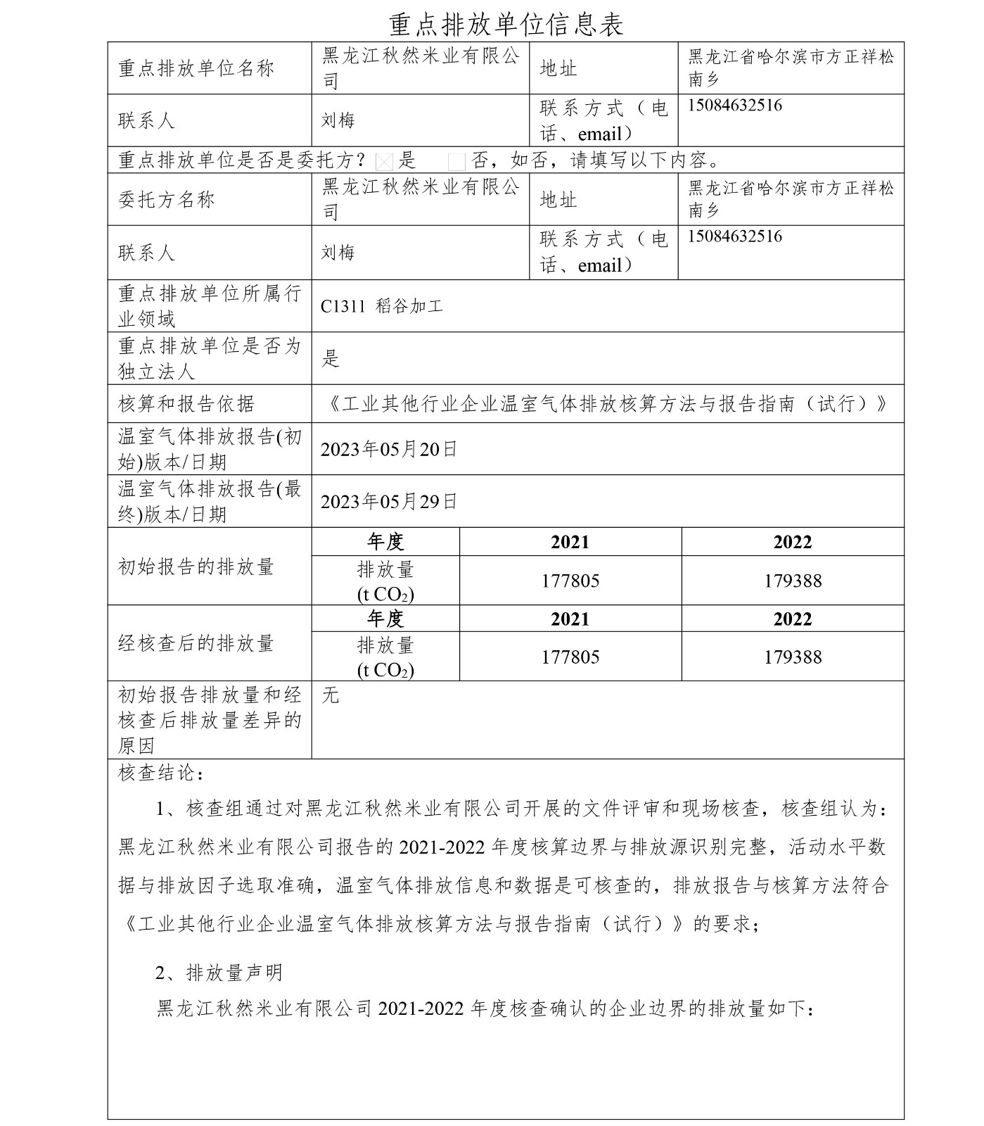 秋然米業(yè)溫室氣體核查報告